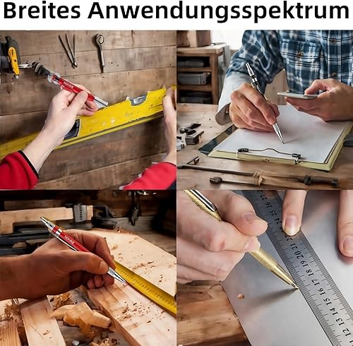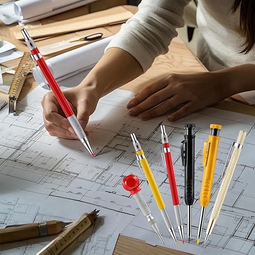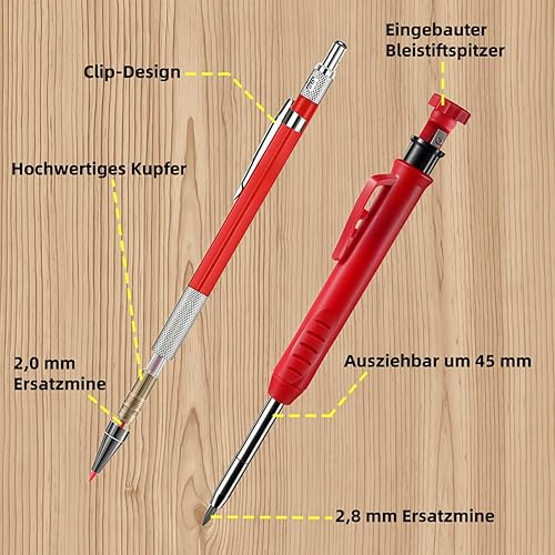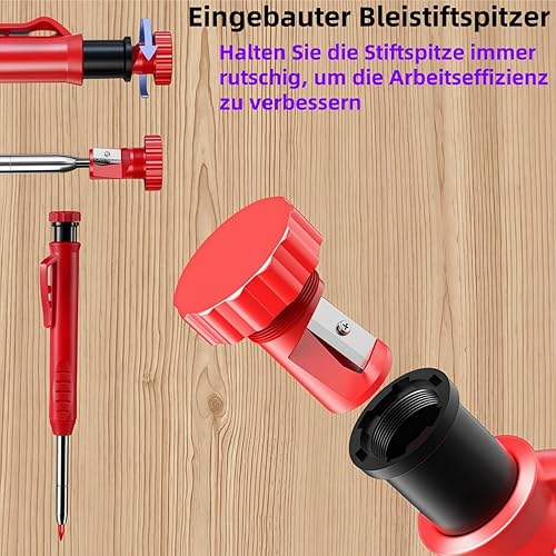 LunarGleam 44 Stück Tieflochmarker Bleistift Set - mit 7 Zimmermannsbleistift & 36 Bleistiftminen & 1 Stanzpositionierungsstift & Eingebautem Spitzer, für Holzbearbeitung, Baustelle mit Etui