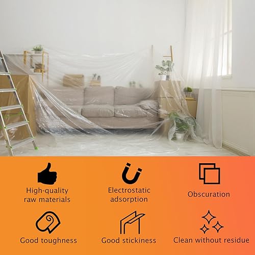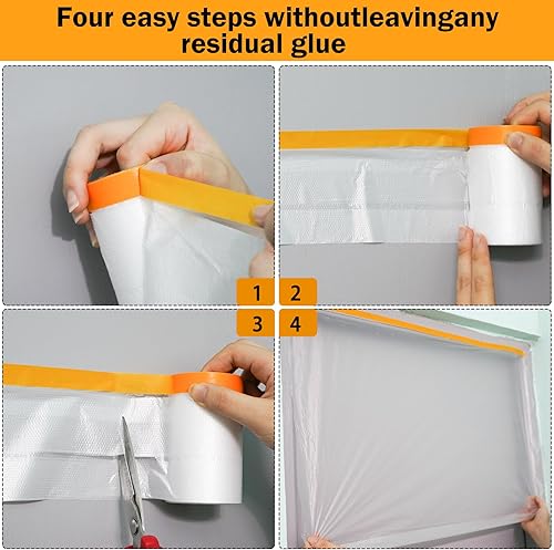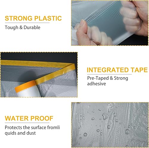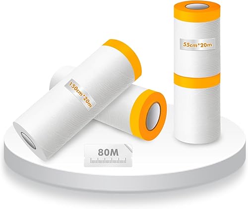 Gigmeta 6 Rollen Abdeckfolie Maler, Abdeckfolie Klebeband Goldband Masker mit Folie 55cm*20M, Transparent Abdeckfolie mit Gewebeklebeband Selbstklebende Malerfolie Malerband
