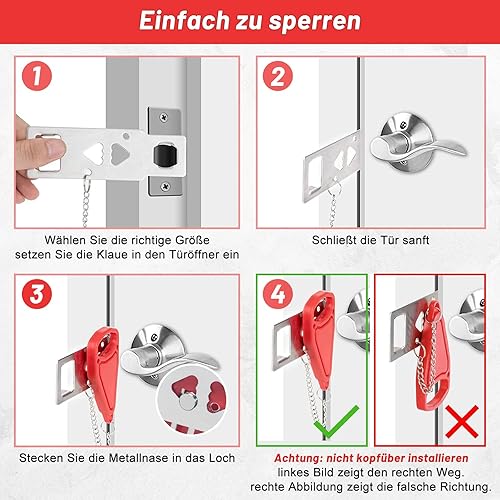 Portable Door Lock Tragbares Türschloss for Travelling Türkette ohne Bohren Sicherheitsschloss Wohnungstür Travel Lock Rot