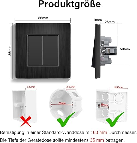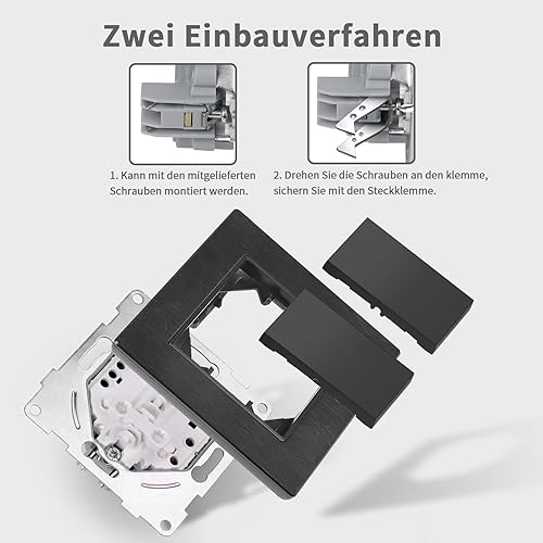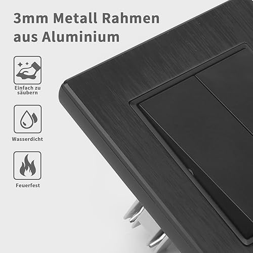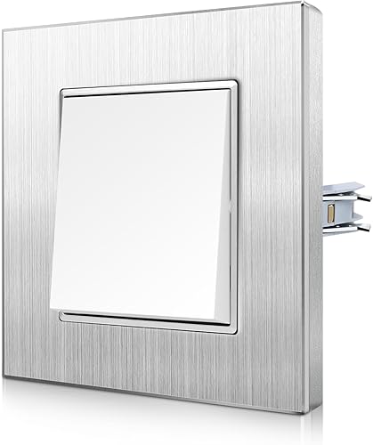 CNBINGO Aluminium Lichtschalter mit Spannkrallen - Licht Schalter Unterputz mit Rahmen aus Aluminium - Kratzfest Wippschalter - Silber Einbauschalter - 1 Fach 1 Weg Wandschalter