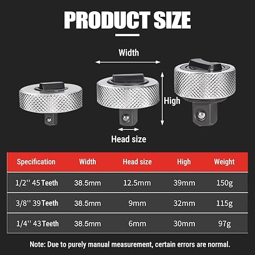 Uadme Fingerratsche, Mini Fingerratschen ohne Griff, 3-teiliges Handflächen Ratschenschlüssel, Umkehrbares Daumenrad, für Enge Räume, 1/4 3/8 1/2 Zoll