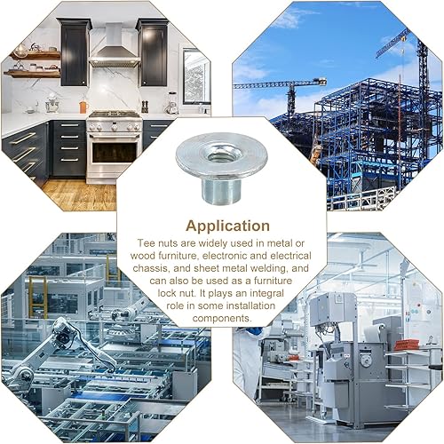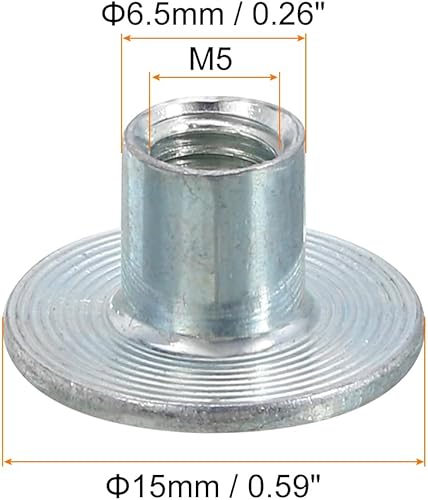 QUARKZMAN M5 T-Nüsse, 24 Stück Kohlenstoffstahl T-Nut Runde Basis Schweißmuttern 8mm Höhe Durchgangsloch Flansch Einsetzmuttern mit weiblichem Gewindeplatte