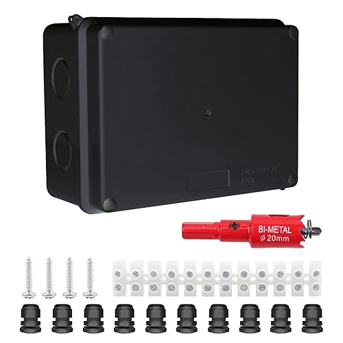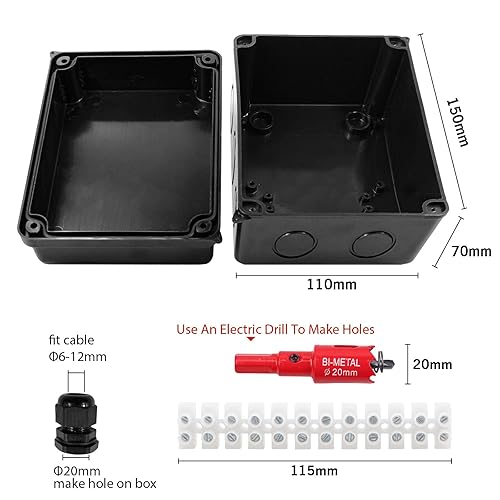 LANUCN IP65 Abzweigdose Aufputz Wasserdicht, 150x110x70mm, Groß ABS Verteilerdose Außen, Ap Klemmkasten mit Kabelverschraubung für Ø6-12 mm, Weiß Abzweigkasten Garten (Schwarz)