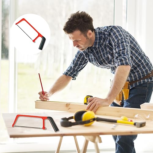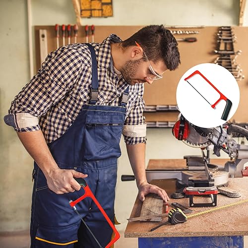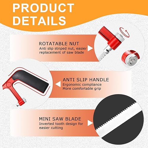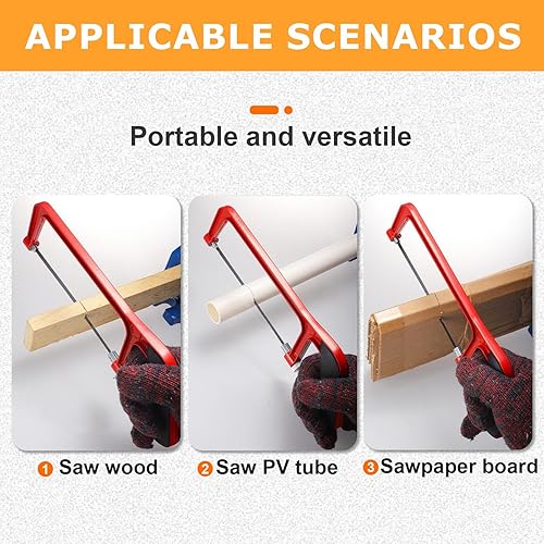 Mini Metallsäge Set mit 10 Austauschbaren Klingen, Rote Schwarze Verstellbare Kleine Handsäge, Professionelle Schwere Junior Bügelsäge für Kunststoff, PVC-Rohre, Dachschindeln & Holzschnitt
