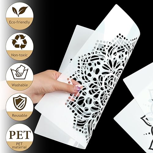 6 Stück Groß Mandala Schablone, Wiederverwendbares Malerei Vorlage Zubehör, DIY Blume Handwerk Schablone, Schablonen Wandgestaltung für Wand, Boden, Fliese Dekoration (30 x 30CM)
