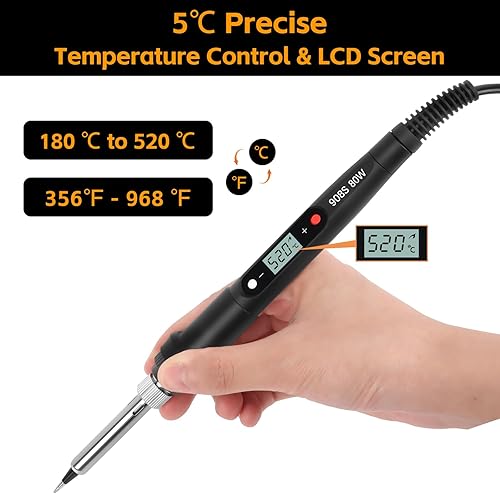 VFANDV Lötkolben Set, 80W 180-520°C Lötkolben mit Ein/Aus Schalter LCD Einstellbar Temperatur Soldering Iron, Mini Lötkolben Lötkolben Lötset für Elektrische Arbeiten - Lötgerät