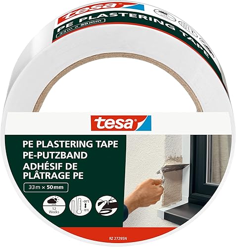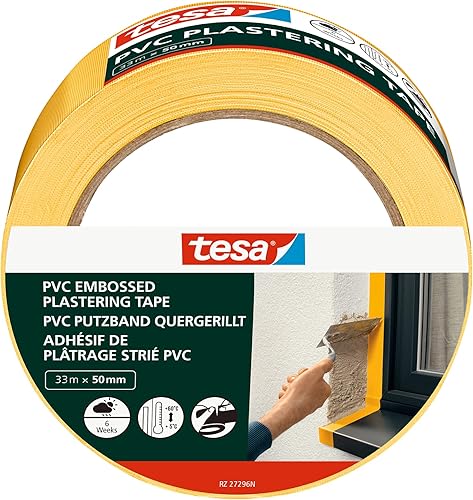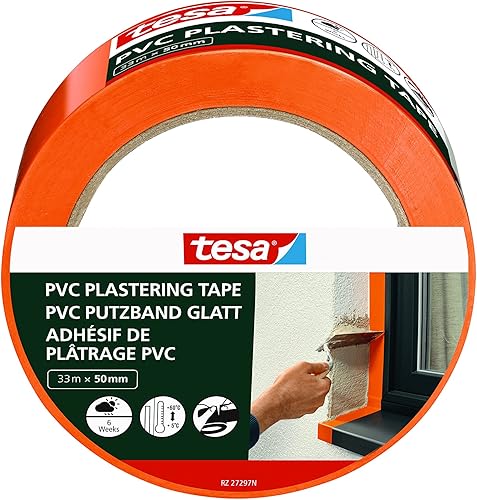 tesa Putzband PVC - Putzklebeband mit verstärktem PVC-Trägermaterial - zum Schutz beim Verputzen im Außenbereich - temperaturbeständig, von Hand einreißbar - orange - 33 m x 50 mm