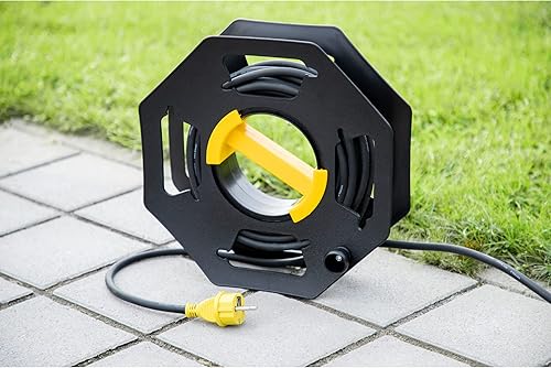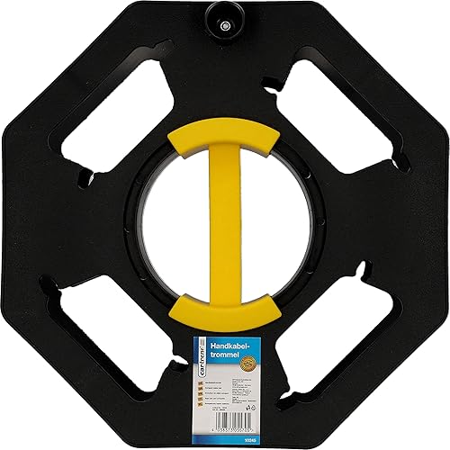 cartrend Caravan Handkabeltrommel, Kabeltrommel leer, für Camping und Haushalt, bis zu 25 m Kabel, Kunststoff, schwarz-gelb