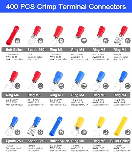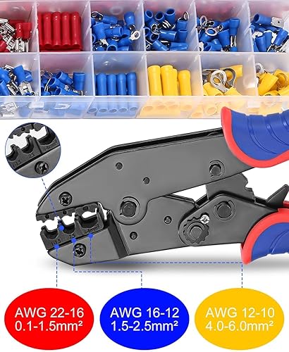 Crimpzange Kabelschuhe Set für 0,5-6mm²Kabelschuhzange mit 400 Stück Kabelschuhen Crimpzange mit Ratschenfunktion Kabelschuh für Zange Haushaltsgeräte DIY Verbindung, Fahrzeug Schaltung Wartung