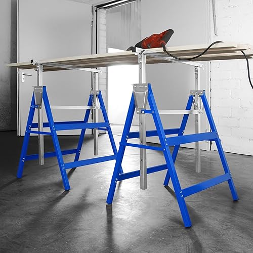 TecTake 800557-2x Gerüstbock 7-fach höhenverstellbar, Belastbarkeit pro Gerüstbock 220 kg, Zusammenklappbar - Diverse Farben (Blau | Nr. 402450)