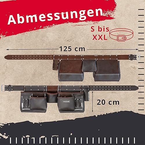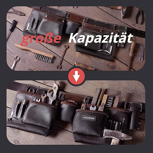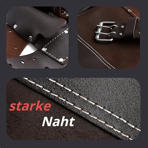 12 Taschen Schreiner Ölüberzogenes Leder Werkzeuggürtel | Handwerker Arbeits Gürtel Schürze für Männer | Werkzeughalter Arbeitsorganizer für Bauherren, Zimmerleute, Gärtner, Elektriker, Diy Er
