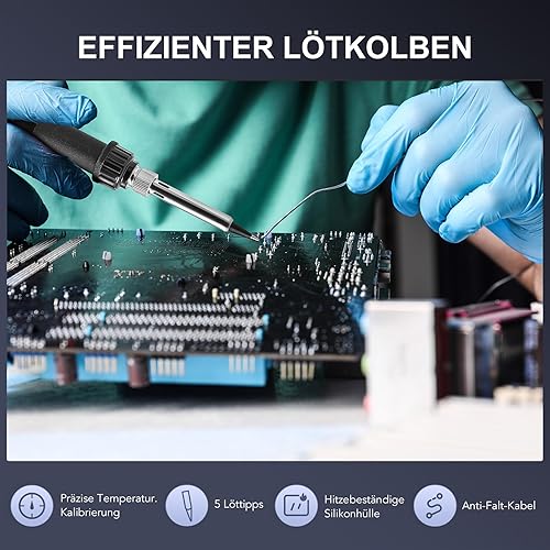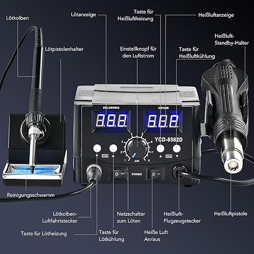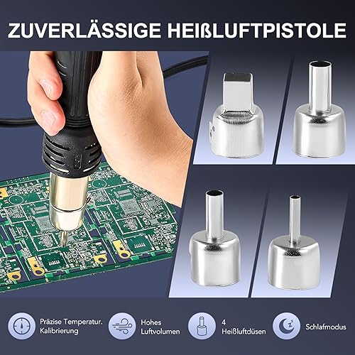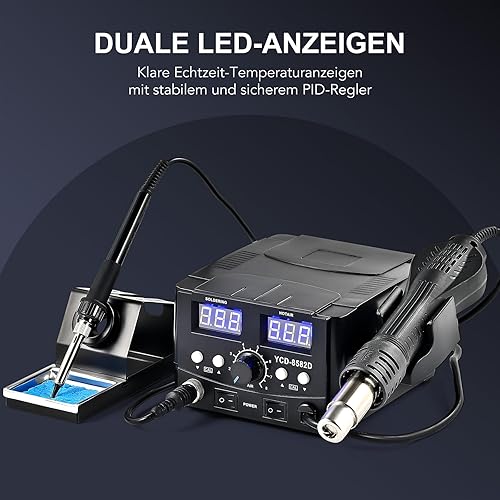 CREWORKS Heißluftlötstation 2IN1 SMD Entlötstation Heißluft Lötstation Entlötstation 750W Heißluftgebläse 75W Lötkolbenleistung Lötkolben mit LED-Anzeige, Schlafmodus, Tempratur Einstellbar
