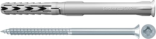 fischer Langschaftdübel SXRL 10 x 80 FUS, Dübel mit Sechskantschraube & angeformter U-Scheibe, Nylondübel für die Befestigung von Metallkonstruktionen, 50 Stück