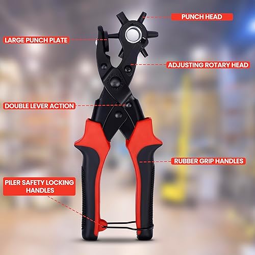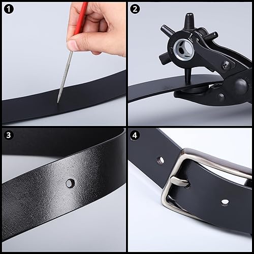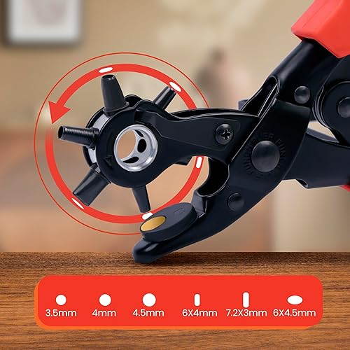 Kurtzy Drehbare Lochzange für Leder - 6 verschiedene Größen - Gürtellochzange Lochstanzer Set - Robustes Werkzeugset zum Stanzen von Uhrenarmbändern Schuhen Sätteln