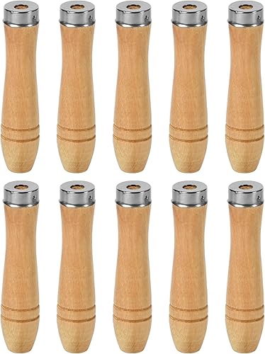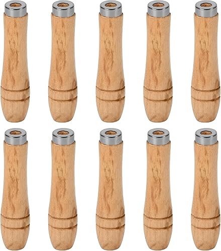 SagaSave 10Stück Holz Feilengriff, Feilenschneidewerkzeug-Handwerk, Sicherheits-Feilengriff mit Metall-Sicherheitsringen, Feilenschneidewerkzeug-Griff, langlebiger Ersatz-Feilenschneidegriff (90mm)