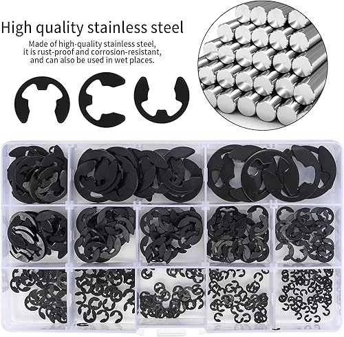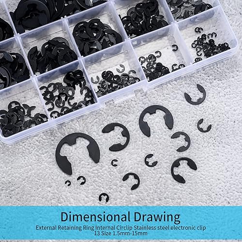 420 Stk E-Clips, E Externe Sicherungsringe Sortiment Set, Sprengringe, Federstahl Sicherungs zange Unterlegscheiben für Befestigen Lagern Zahnrädern Riemenscheiben, 13 Größen