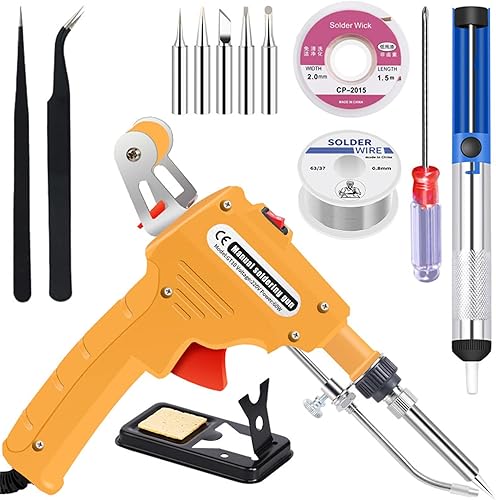 60W Lötkolben Set Automatische Elektronik Lötpistole Kit mit Entlötpumpe, Pinzette, Handheld Entlöten Zinnpistole für Schmuck, Heimwerker, Leiterplattenreparatur