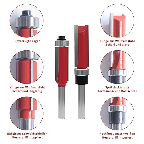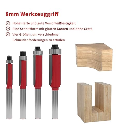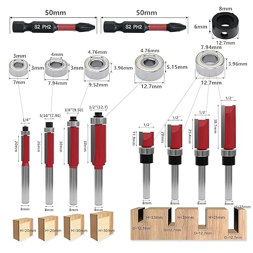 27 Stück 8mm Schaft Bündigfräser-Set, mit Schlagmagnet-Bits, Lager, Schraubenschlüssel, 8mm Schaftfräser, Holzbearbeitungswerkzeuge, Hartmetall-Holzbearbeitungsfräser-Sets