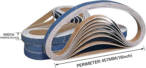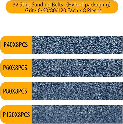 BRESUCNY Schleifband/Feilenband 13 x 457 mm- 8 X Körnung 40/60/80/120 Zirkonkorund Schleifbänder Set für Metall Trocken- und Nassschliff Geeignet(32 Stück)