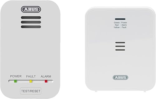 ABUS Kohlenmonoxid-Melder COWM370 CO-Melder mit 7-Jahres-Sensor, 85 dB lautem Alarm UND ABUS Gasmelder GWM100ME für Gasthermen - Erdgas (Methan) / Stadtgas - Alarmlautstärke 85 dB - Set