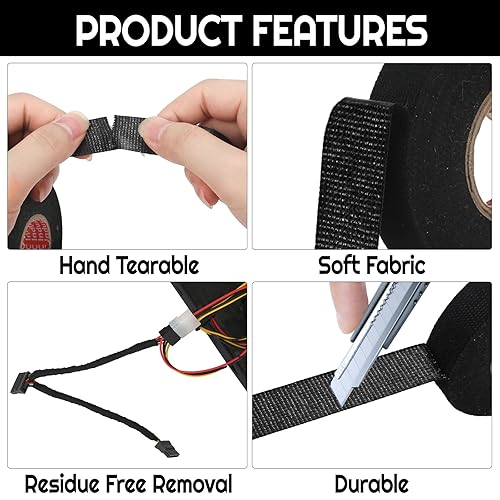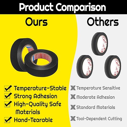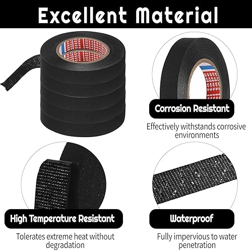 5 Stück KFZ Gewebeband, Auto Kabelbaum Filzband Selbstklebend, Gewebeband Panzerklebeband, Hitzebeständiges Kabelbaum Filzband Isolierband,Isolierband Schwarz für Kabelbäume Elektrisches Klebeband