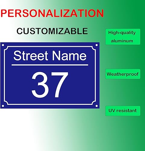 CQSXM Hausnummer mit Straßennamen und Nummer, Hausnummernschild aus Aluminiumlegierung - Anpassbare Nummer und Straßenname, Wetterfest (Blau)