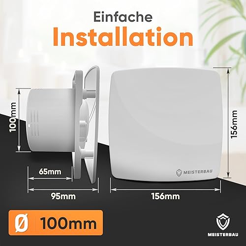 MEISTERBAU Badlüfter mit Feuchtigkeitssensor & Nachlauf [Made in Europe] - Leiser Lüfter 100mm Durchmesser - mit Nachlauf - Effizienter Abluftventilator - Bad & Dusche