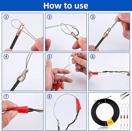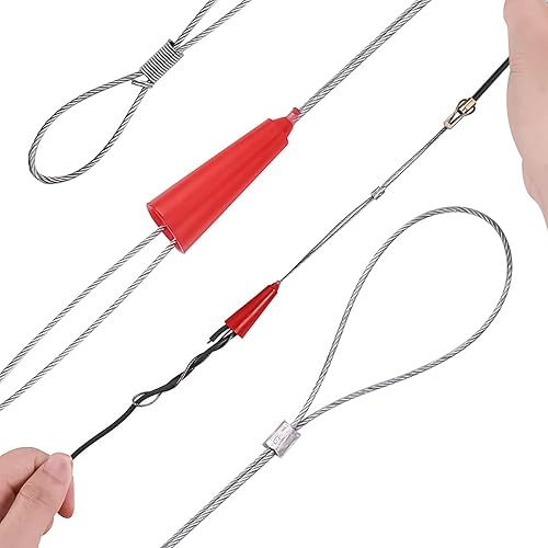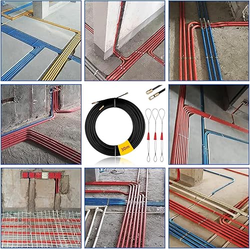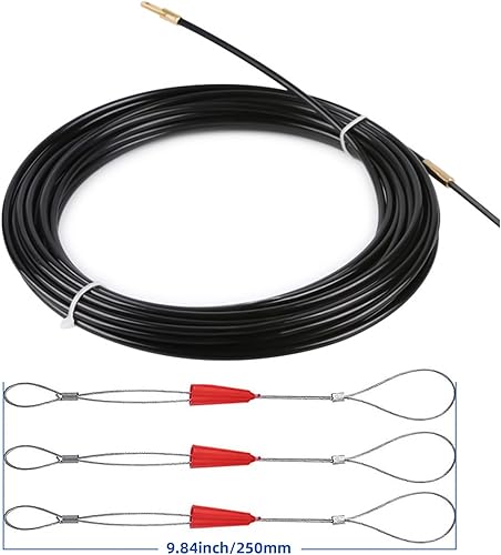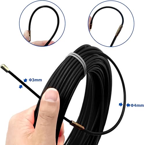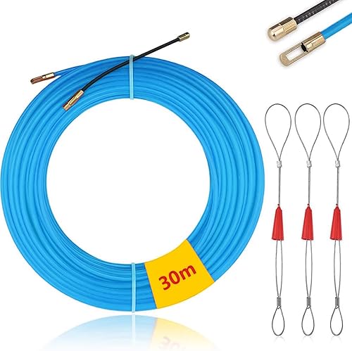 Mis.Moon 30m Kabeleinziehhilfe mit 3 Führungsfeder, φ4mm Einziehband Einziehdraht Einziehspirale, Kabeleinzug Einziehhilfen, Fischband Drahtzieher für Einzugsband zur Kabelverlegung (Orange)