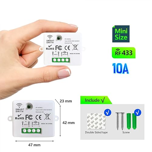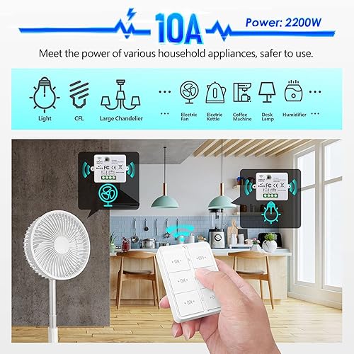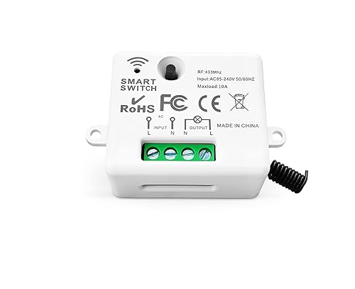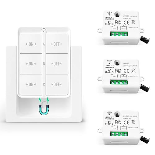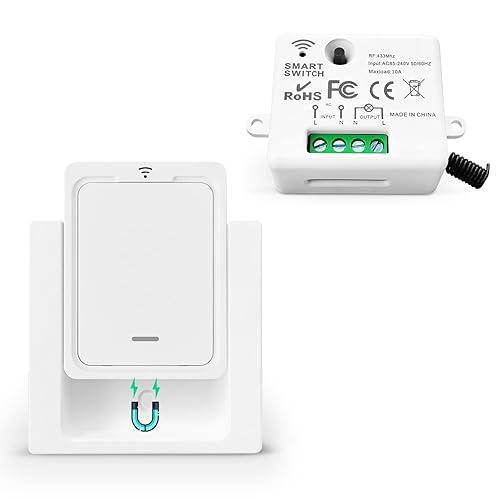 Tedeligo Drahtloses Lichtschalter Set, Mobiler Drahtloser Fernbedienung Schalter AC220V 230V 10A Relaisempfänger Einfache Installation Für Lampe 100M Steuerbereich