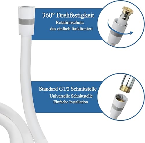 Empyreal Duschschlauch, Brauseschlauch, Mit universeller G1/2 Äußerst flexibler Shower hose gegen Verdrehen geschützt, Doppelter Drehungsschutz, aus Gummi Gefertigt,für Das Badezimmer, Längen 2m