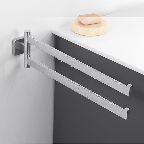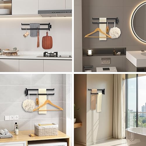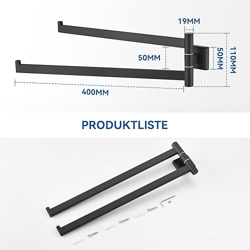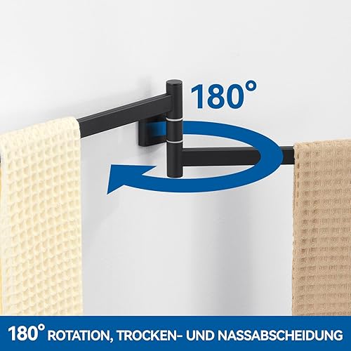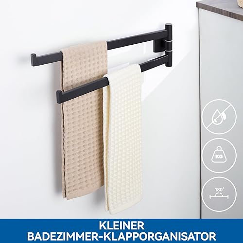 Auralum Handtuchhalter Schwarz mit Bohren - Handtuchhalter Bad 180° Dreh- und Klappbare Doppelstange -Handtuchhalter Edelstahl mit 40 cm Armlänge, für Badezimmer - Mit Montagezubehör
