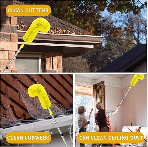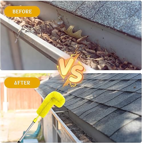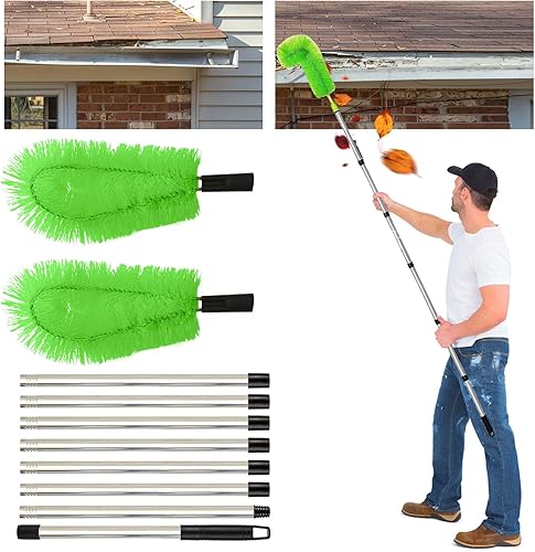 Gachiwar Dachrinnenreiniger,Dachrinnenbürste mit 8Pcs Teleskopstiel 310CM,Teleskop Tachrinnenreiniger Leicht zu Zerlegen,für Reinigen von Blättern/Schmutz/Fenstern/Dachrinnen/Kronleuchtern,Grün