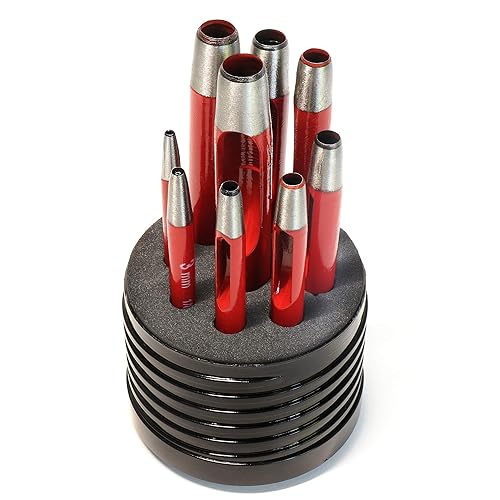 S&R Locheisen-Satz aus hitzegehärtetem CrV-Stahl: Präzisions-Henkellocheisen für Leder, Gummi, Textilien & mehr – Stanzdurchmesser 2-12 mm, inkl. sicherer Kunststoffrolltasche