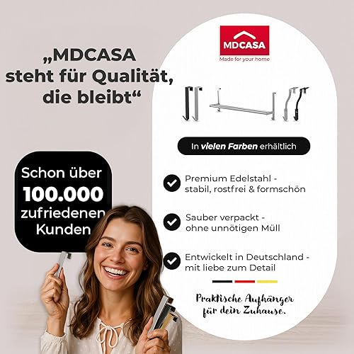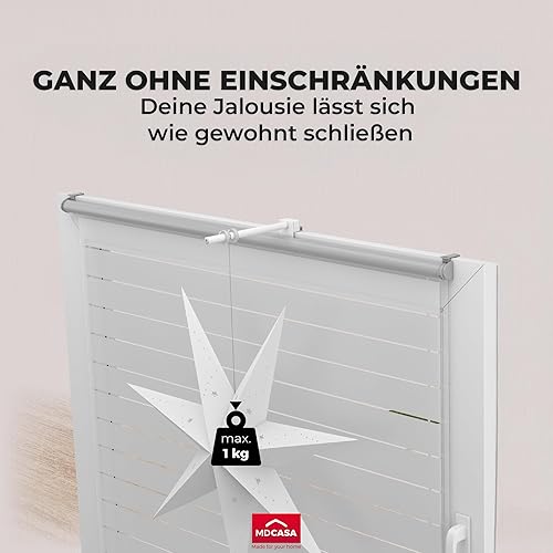 MDCASA Fensterhaken zum Einhängen, weiß I Verstellbarer Fensterhaken (12-20mm) I Praktischer Klemmträger für alle gängigen Fensterrahmen geeignet