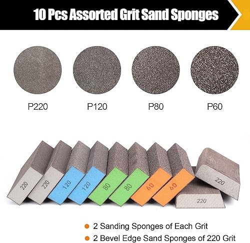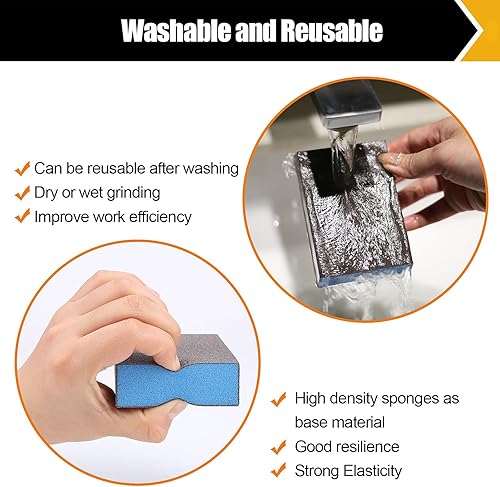 Mojucraft 10 Packen Schleifschwämme, abwaschbar und wiederverwendbar Schleifblöcke für Holz Trockenbau Metall Gläser grob/mittel/fein/ultrafein 60/80/120/220 Korn Schleifpapierblöcke