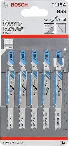 Bosch 5x Stichsägeblatt T 118 A Basic for Metal (für Stahlbleche, Professional Zubehör Stichsäge)