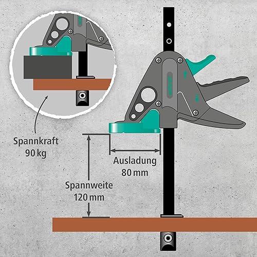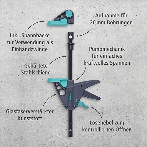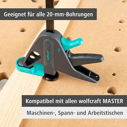 wolfcraft Werktischspanner PRO 65-150-W I 3036000 I Zum Spannen auf allen Tischen mit 20-mm-Bohrungen