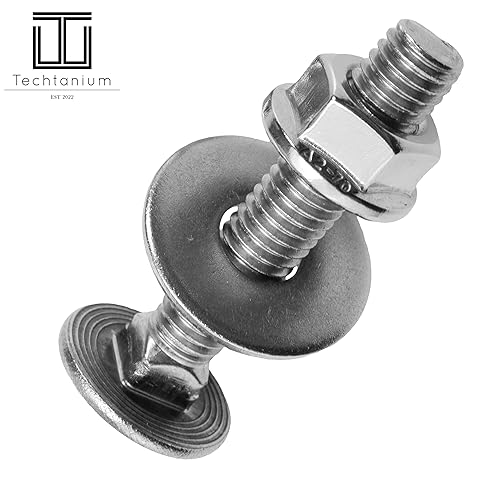 Techtanium® Schlossschrauben M12 x 35/35 mm inkl. Flanschmuttern und großen Unterlegscheiben M12 aus Edelstahl A2 (5 Stück) | Schrauben | Muttern | U-Scheiben | DIN 603 & DIN 6923 & DIN 9021