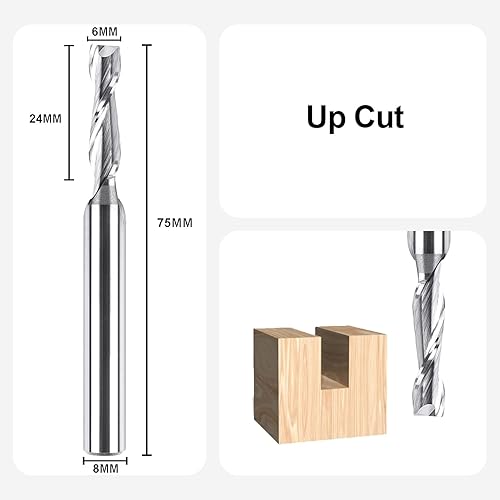 SpeTool Spiralfräser 8mm Schaft Upcut 6mm Schnittdurchmesser CNC 2 Flöten Fräser für Oberfräse Holzfräser 24mm SchnittlängeNutfräser VHM Schaftfräser Spiralnutfräser
