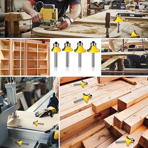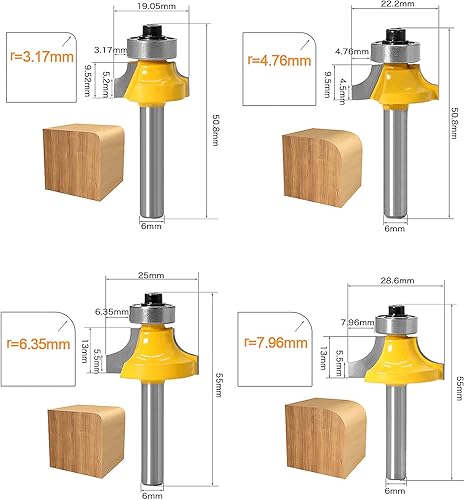 Abrundfräser Standard Fräser Set Oberfräse Zubehör mit Lager 6mm Schaft für die Holzbearbeitung Fräsen 4 Stück