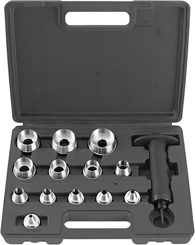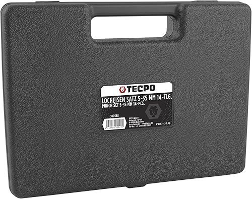 TECPO Locheisen Satz 14-teilig, Loch Stanzen 5-35mm Durchmesser Lochstanzer Henkellocheisen Werkzeug Set -Locheisenhalter mit ergonomischem Griff