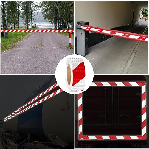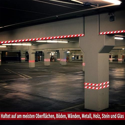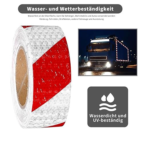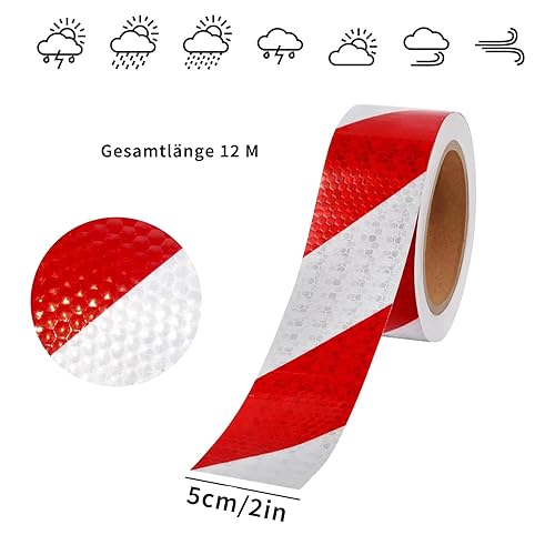 Huamirra Reflektierendes Band, Reflektorband Selbstklebend, Rotes und Weißes Selbstklebendes, 12m × 5cm Reflektierendes Band, eflektorband Klebeband,Reflektierendes Klebeband für Sicherheit Warnung