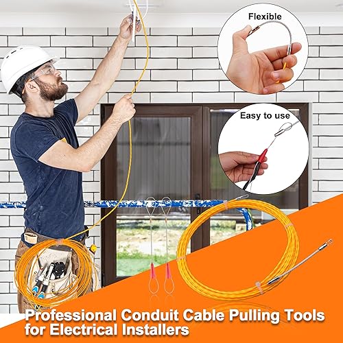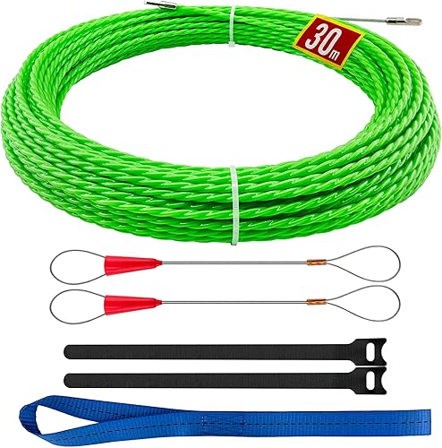 Kabeleinziehhilfe 30m, 4,5 mm Zugdraht Einziehspirale,Einziehhilfe Kabel Einzugshilfe,mit 2 Führungsfedern Einziehfeder,Kabelziehhilfe Einzugsfeder Einziehband