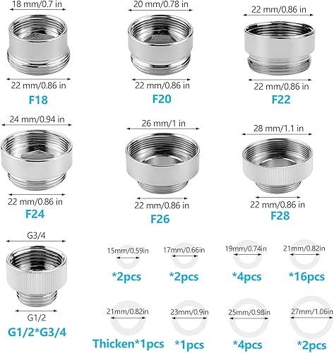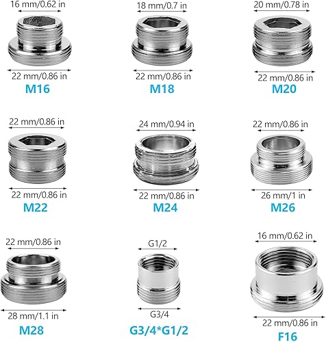 16 Stück Wasserhahn Adapter Set, Messing Wasseranschluss Adapter mit Dichtungen, Gewindeadapter, Wasserhahn Aufsatz, für Gartenschlauch Anschluss, Spülbecken, Wasserfilter