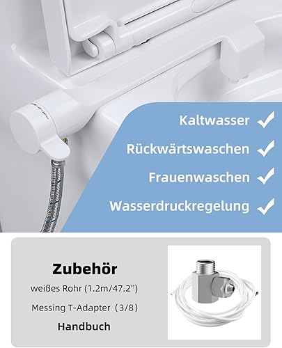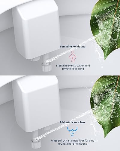 Hibbent Nicht Elektrisch Bidet Toilettenaufsatz mit Einziehbare selbstreinigende Doppeldüsen, und Heckreinigung,Einstellbarer Druckschalter für Kaltes Wasser