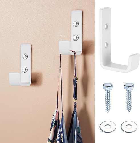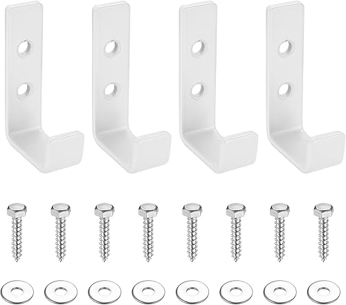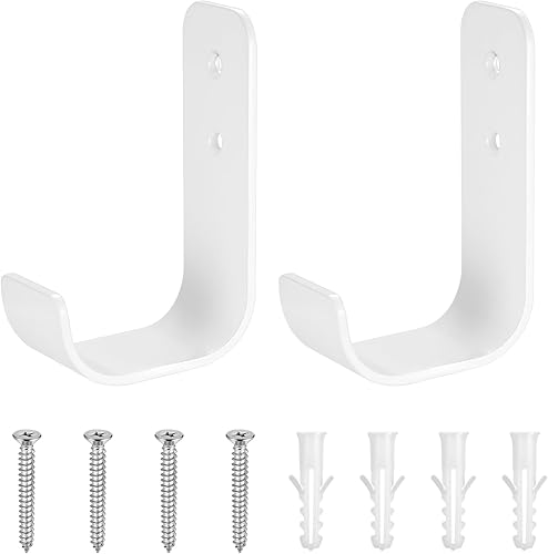 4 Stk Wandhaken Garagenhaken, Schwerlasthaken Garage Haken, Wandhalterung Wandhaken zum Schrauben, J Haken Universalhaken zum Aufhängen, Gerätehaken Leiterhaken für Garage Gartenschlauch, weiß