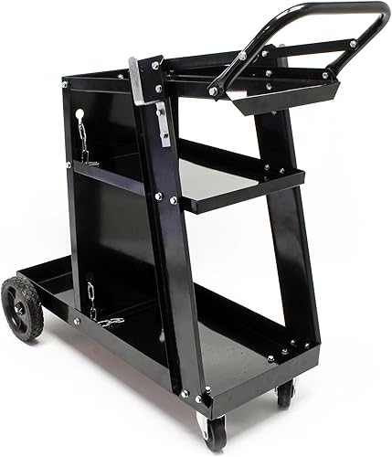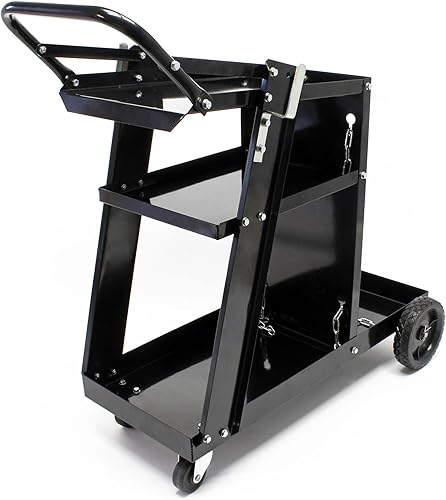 Wiltec Schweißwagen 765 x 745 x 385 mm aus Stahlblech, Werkstattwagen als Schweißmobil, Schweißgerätewagen auf Rollen, Flaschenwagen mit 3 Ablagen