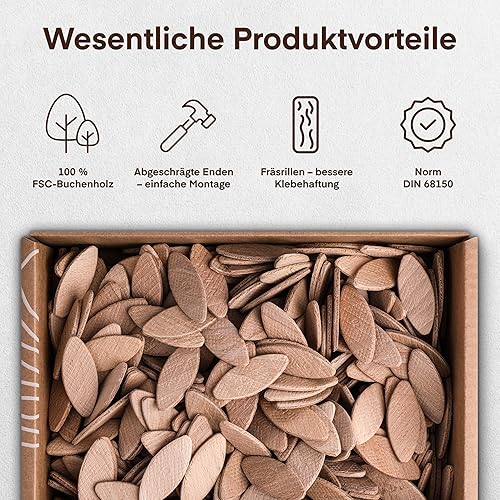 SOLID Flachdübel Holzdübel Größe 20 Kompatibel Mit Dübelfräse Lamellofräse 500 Stück Verbindungsplättchen Aus Buchen Dübel Wie Lamello Holz Buchenholz Verbindungen