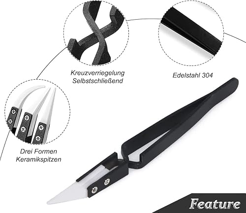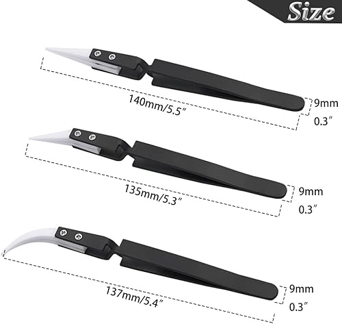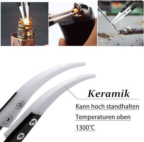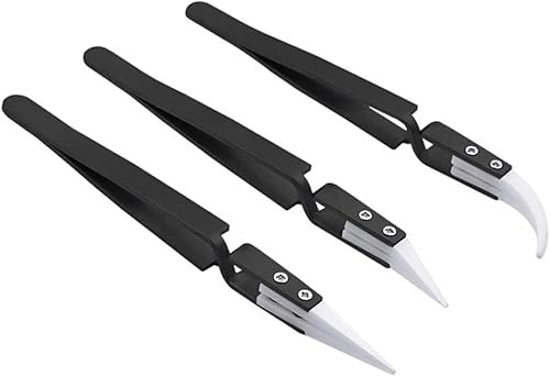 Saipor 3 Stück Anti-Statik Pinzetten Set Keramik Pinzette Edelstahl Präzisions Pinzette Hitzebeständige für Elektronik Reparaturen, Schmuck, Computer, Labor Arbeiten, Industrie