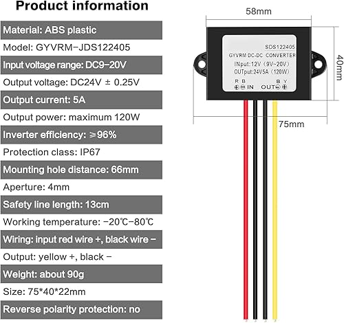Jadeshay Spannungswandler 12V auf 24V, DC DC Wandler 12V Auf 24V 5A Boost Modul 120W Step Up Modul Spannungsregler
